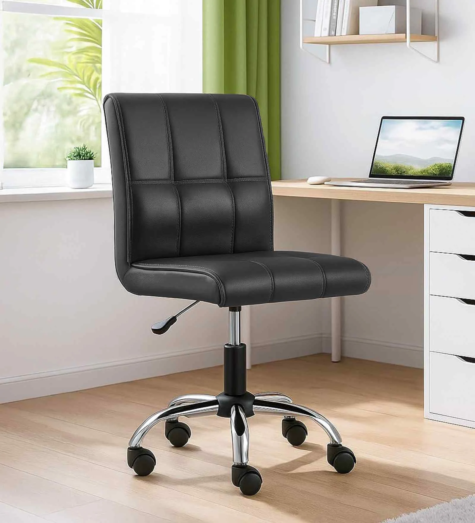 Cola Leatherette Guest Chair In Black Colour