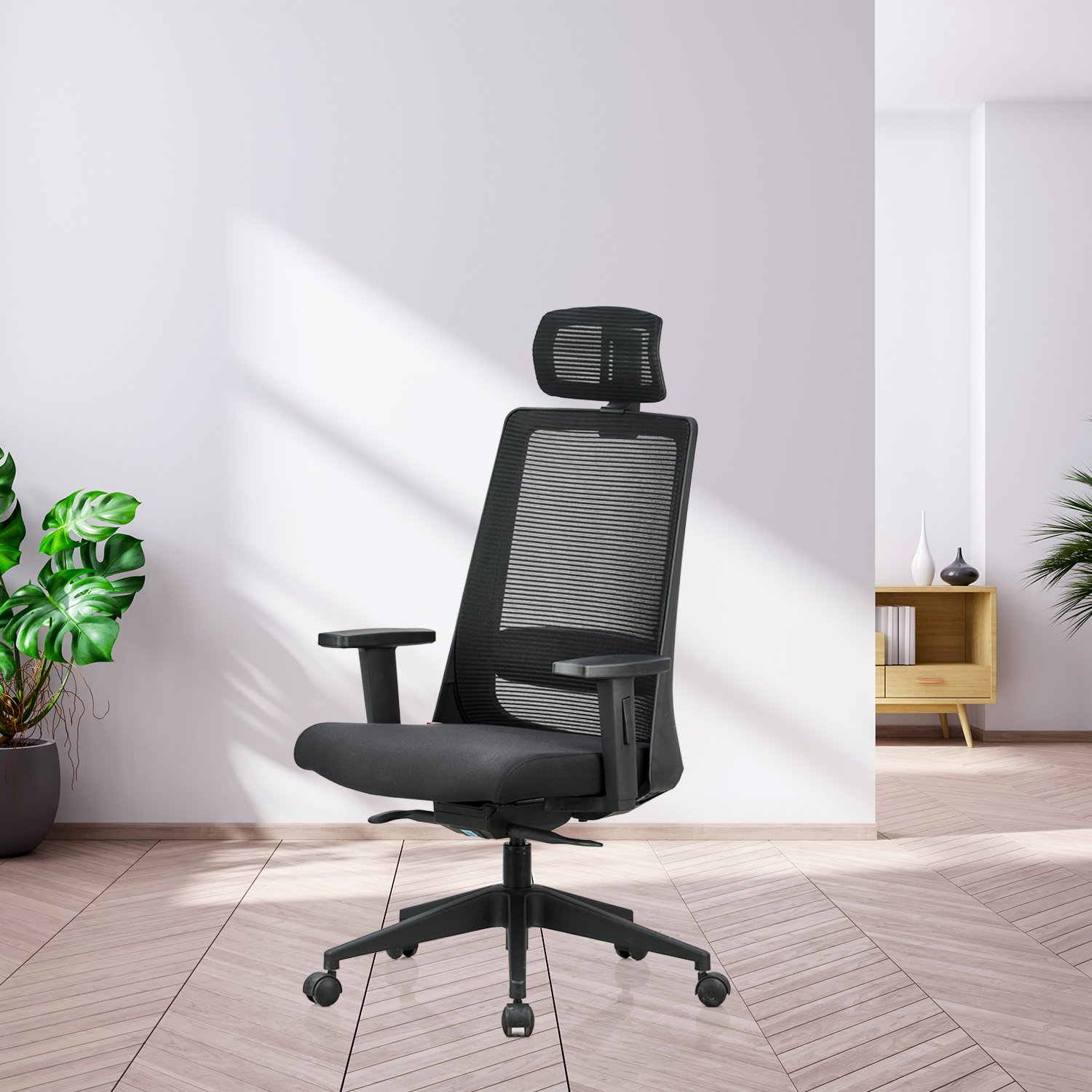 This smart high-back ergonomic task chair is designed to deliver comfort, functionality, and value, making it an ideal choice for modern workspaces. Featuring AN 70 breathable mesh, it ensures proper airflow to keep you cool during long hours of use, while the fabric-upholstered seat provides a comfortable and supportive seating experience. Built with a single lock synchro mechanism, the chair allows smooth reclining with stable positioning, enhancing both comfort and posture. The adjustable lumbar support and height-adjustable armrests offer personalized ergonomics, helping reduce strain and improve productivity throughout the day.