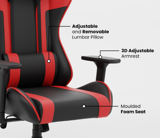 Gaming Chair | 2 Multi-Functional Ergonomic Leatherette Office Chair (Red)