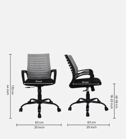 Dimensions – Chair Height (99-109 CM), Seat Width (48 CM), Seat Depth (50 CM) || Seat Upholstery: 45D High-Density Molded Foam | Color: Black | Size: Mid Back