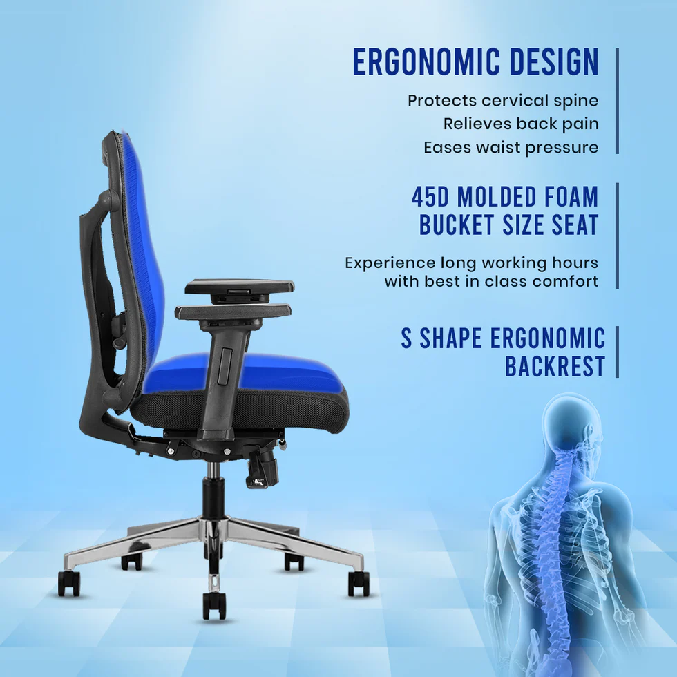 Best In Class Seating Experience – The 45D molded foam seat ensures durability and luxurious cushioning, making it ideal for long working hours. Engineered to promote natural posture and reduce strain, this chair is the perfect companion for productivity and well-being.