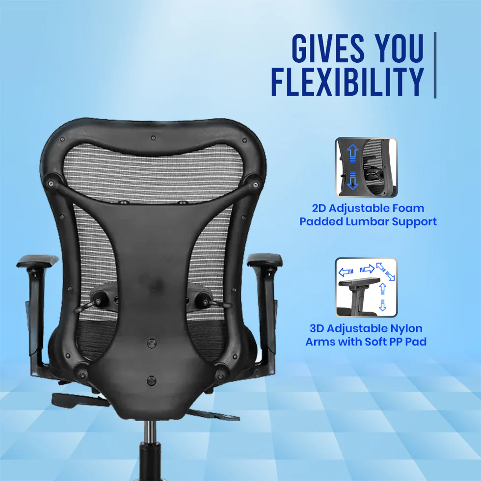 Ergonomically Designed, Best in Comfort – The backrest is s-shaped and designed in such a way that it gives forward support to the lumbar and lower back regions of the user making it one of the best ergonomic chairs available in the market. It is stylish in look and is made with breathable mesh to provide ventilation apart from a stylish and sturdy frame.